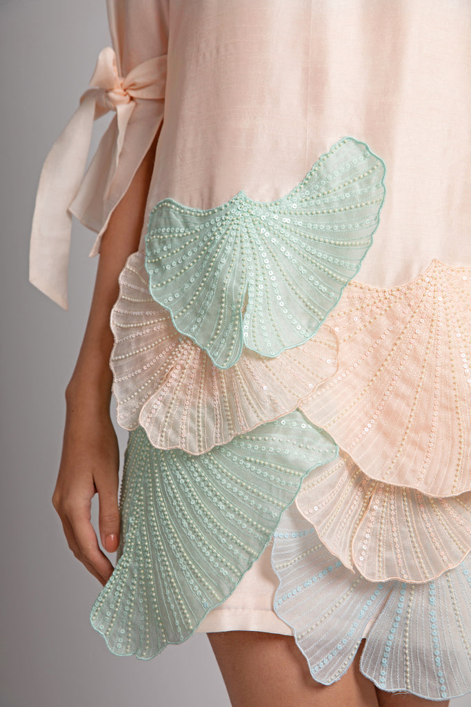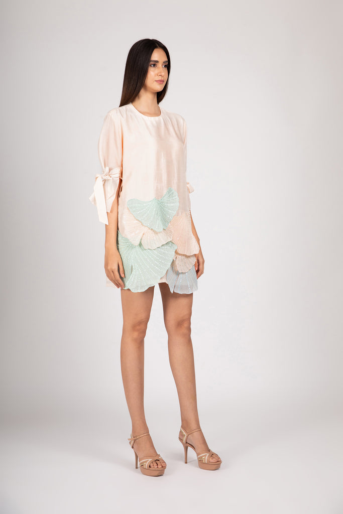 Bamberg silk shift dress with taffeta lining and organza 3D Ginkgo applique