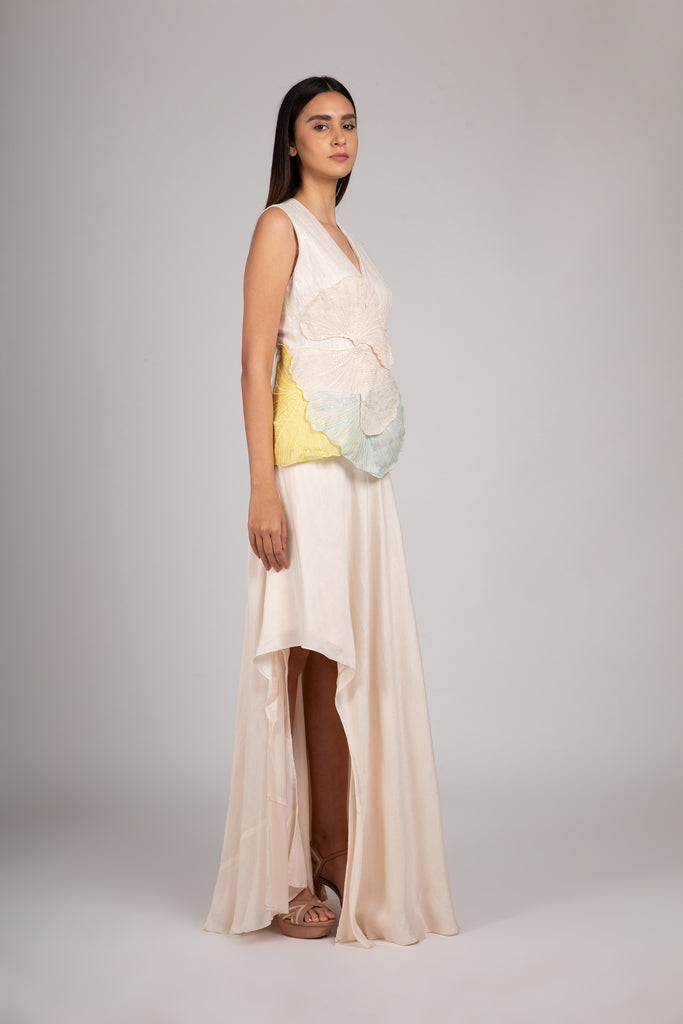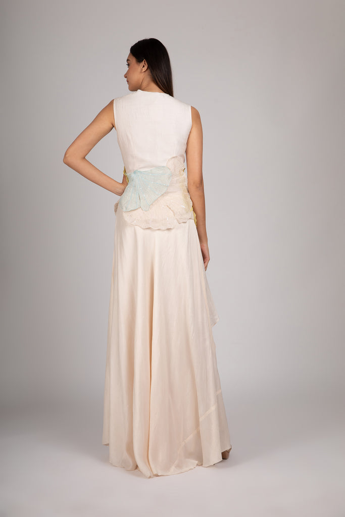 Bamberg silk peplum top with organza Ginkgo appliques