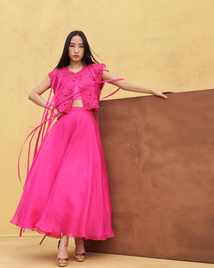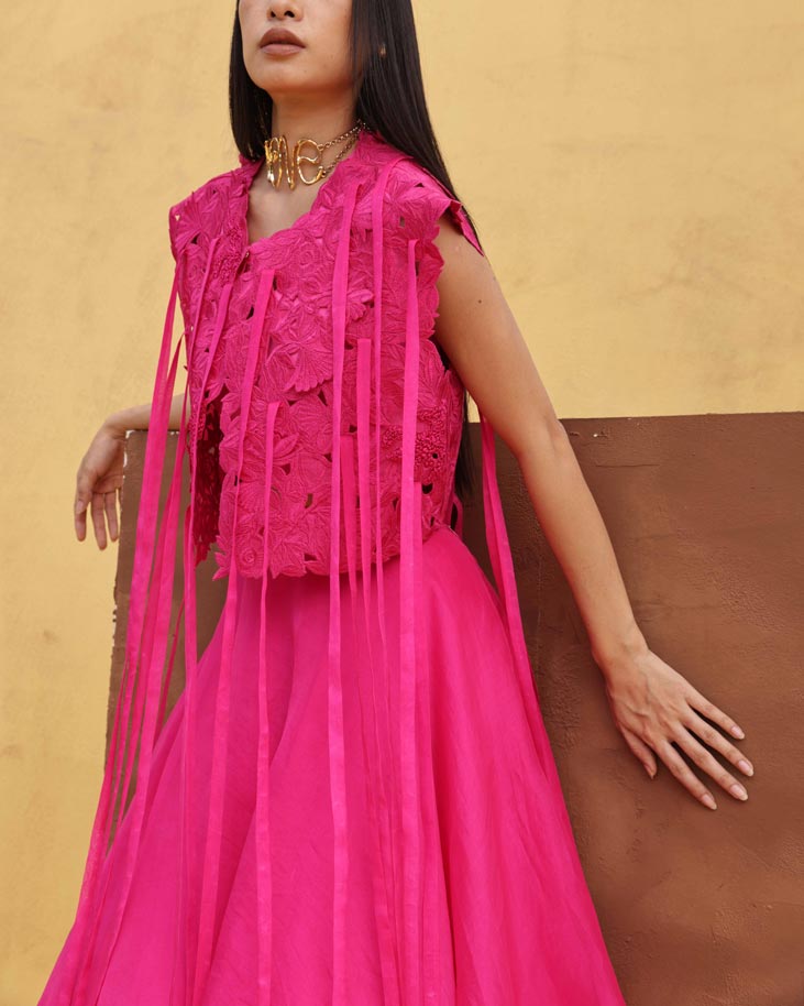 HOT PINK TASSEL CHIRO + SCUBA INNER + MIDI LENGTH SKIRT