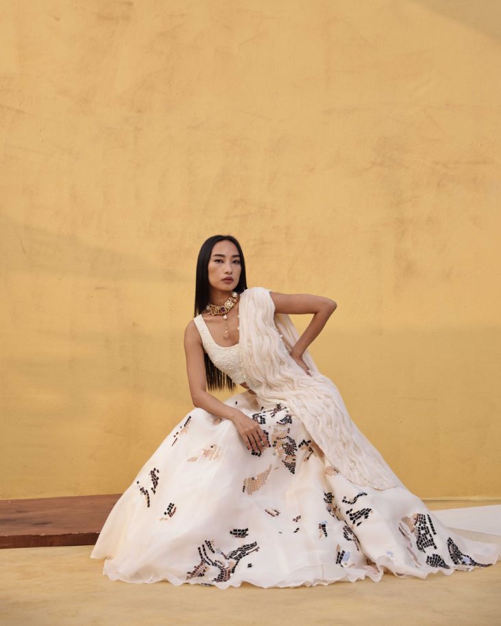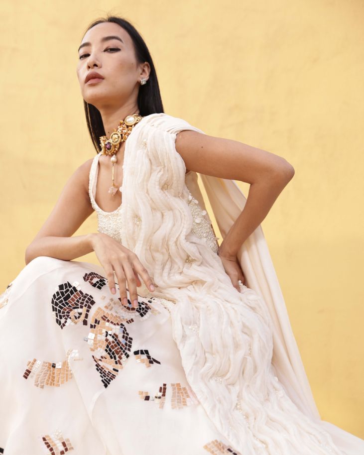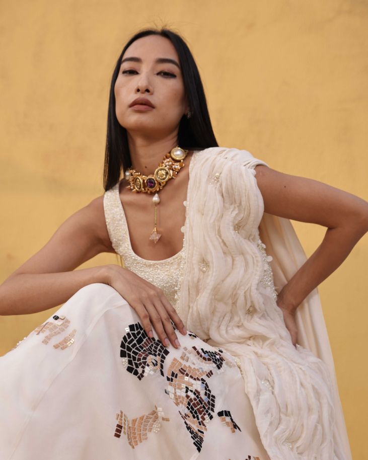EMBELLISHED TOP + CRUSH DRAPE + MOSAIC SKIRT
