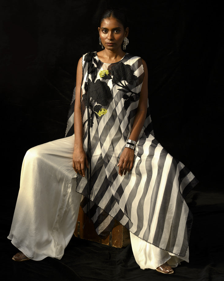 MODAL SATIN JUMPSUIT WITH PRINTED AND APPLIQUED ORGANZA ATTACHED